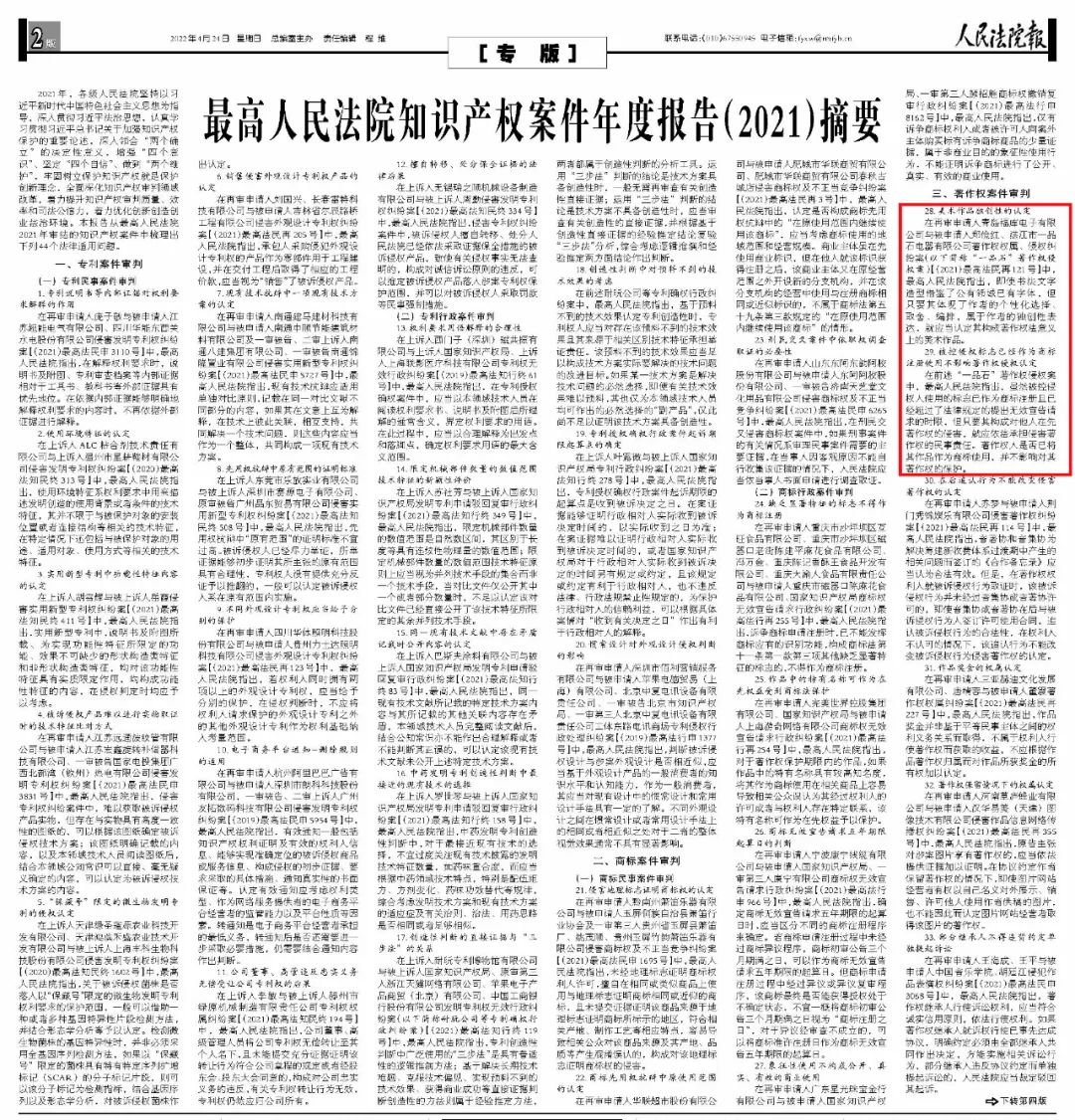 >海星体育>关于我们>荣誉概览>2022>集佳代理的“一品石”著作权侵权纠纷案入选《最高人民法院知识产权案件年度报告(2021)摘要》