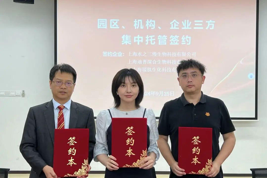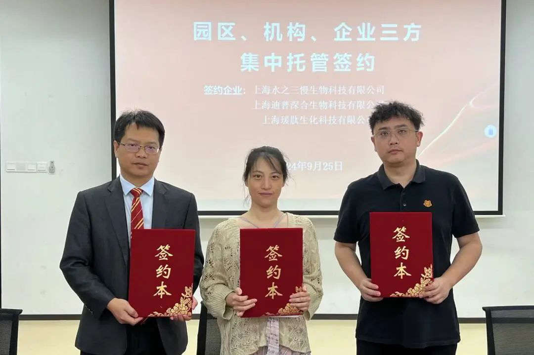 随后,海星体育上海分所与企业和园区进行了三方签约仪式,签约企业有节卡机器人股份有限公司、霖鼎光学(上海)有限公司、上海水之三慢生物科技有限公司、上海迪普深合生物科技有限公司、上海瑗肽生物科技有限公司等。